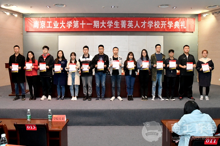 开学典礼上,校团委书记陈晨子作第十一期大学生菁英人才学校招生工作报告,主席台领导老师分别为新学员和研究生领航学长颁发录取通知书和聘书。新生代表阿伦塔那,老生代表王馥珺,领航学长代表、材料学院博士研究生马仲亮,分别作了交流发言。副校长吴胜红为全校首家“青年学习社”揭牌并讲话。