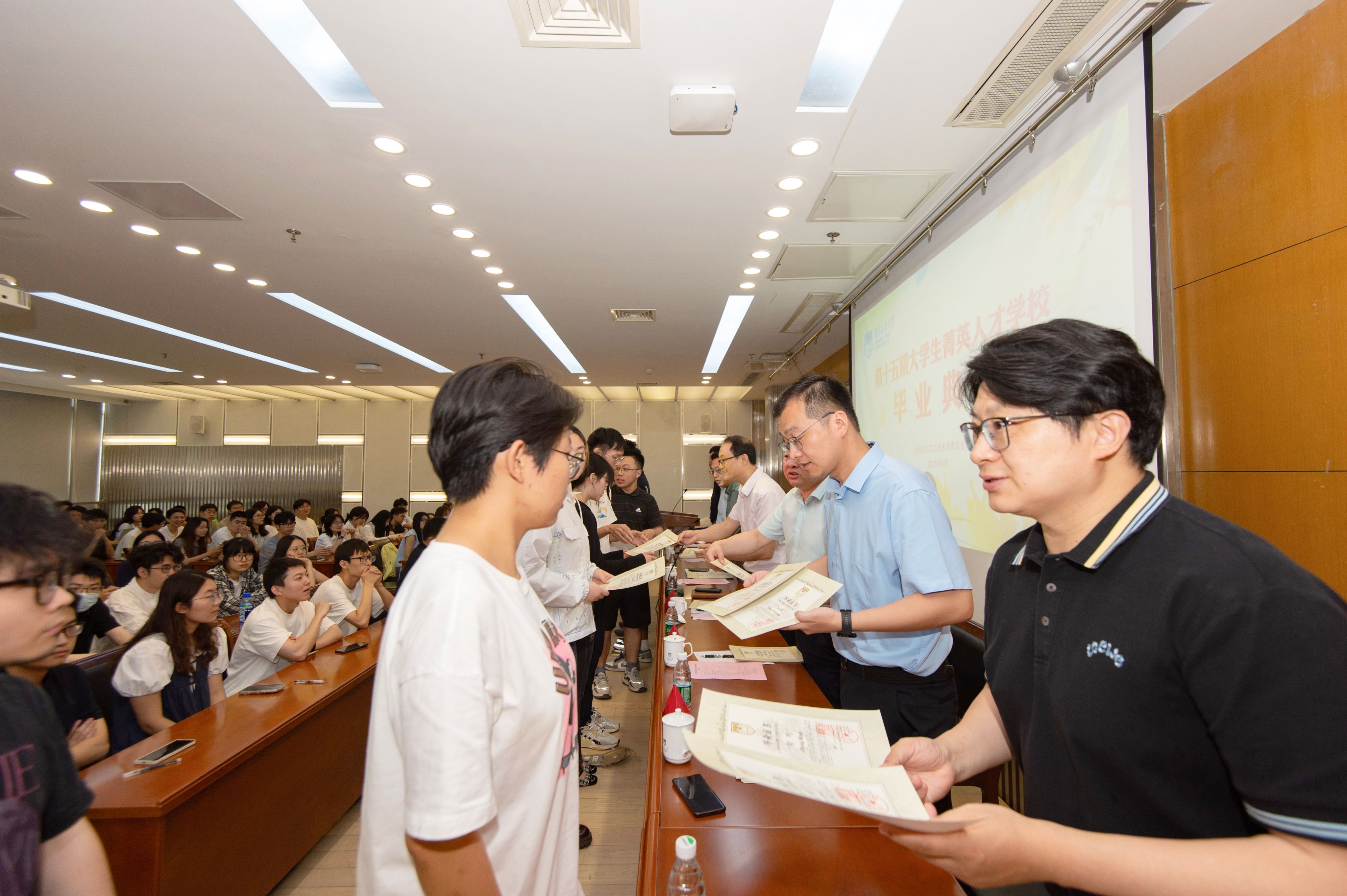6月5日,大学生菁英人才学校第十五期学员毕业典礼在逸夫图书馆五楼报告厅举行。副校长、大学生菁英人才学校校长刘大卫出席活动并讲话。