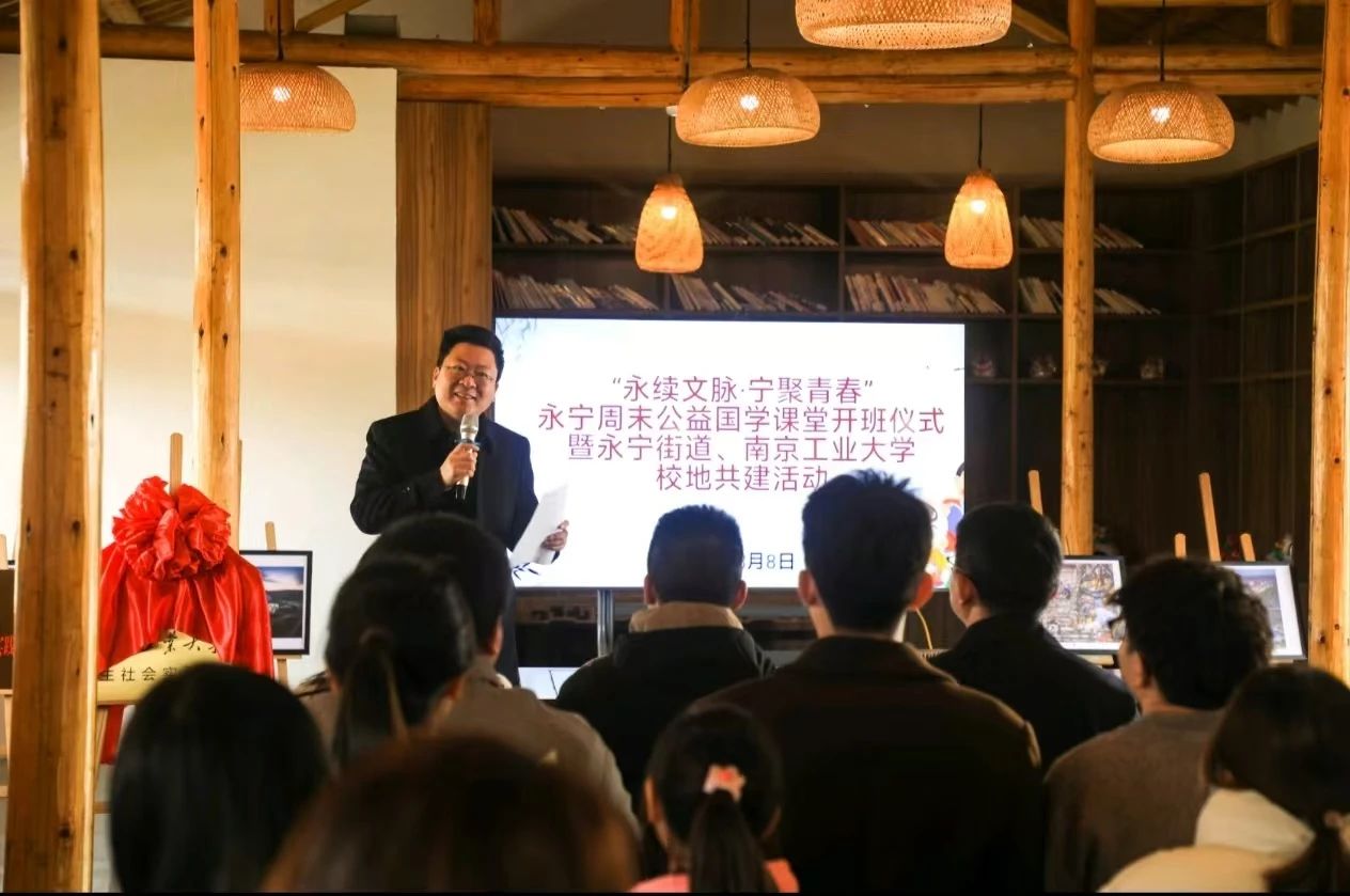 11月8日下午,外国语言文学学院与永宁街道开展“永续文脉·宁聚青春”永宁周末公益国学课堂开班仪式暨校地共建活动。永宁街道党工委副书记李军、党工委宣传(统战)委员秦慧东、侯冲社区党委书记吴波,学院党委书记张翔、校团委副书记王菲、学院党委副书记闻敬、院功能型党支部书记郭乾隆及相关人员,“青言”多语种红色文化、国学文化宣讲团及街道居民等参加仪式。