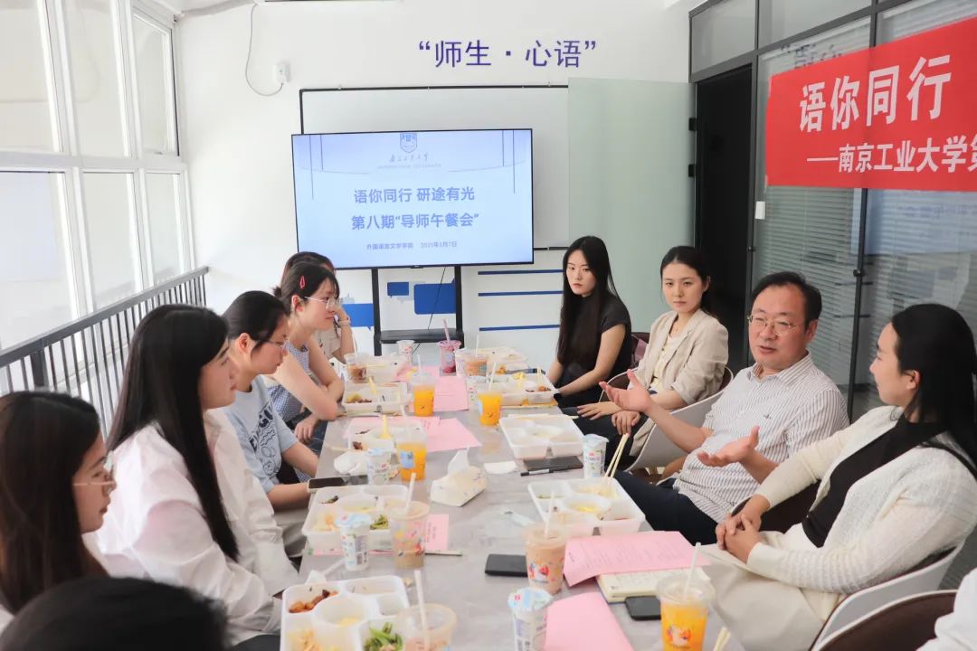5月7日中午,由党委研究生工作部主办、外国语言文学学院承办的第八期“导师午餐会”在景星苑“导学·思政”空间顺利举行。活动以“语你同行·研途有光”为主题,邀请江苏省教学名师、外国语言文学学院院长陈世华教授与10余名研究生代表共进午餐,畅谈学术,共话成长。活动由学院党委副书记闻敬主持。