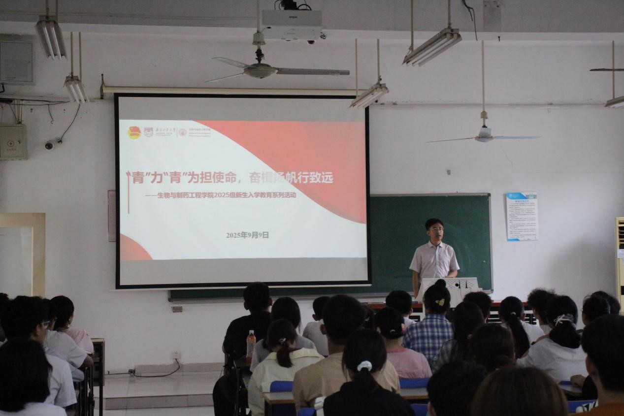 青”力“青”为担使命,奋楫扬帆行致远。近日,生物与制药工程学院院团委书记张健老师面向2025级新生,开展理想信念主题教育活动,为新生筑牢思想根基、明晰成长方向。