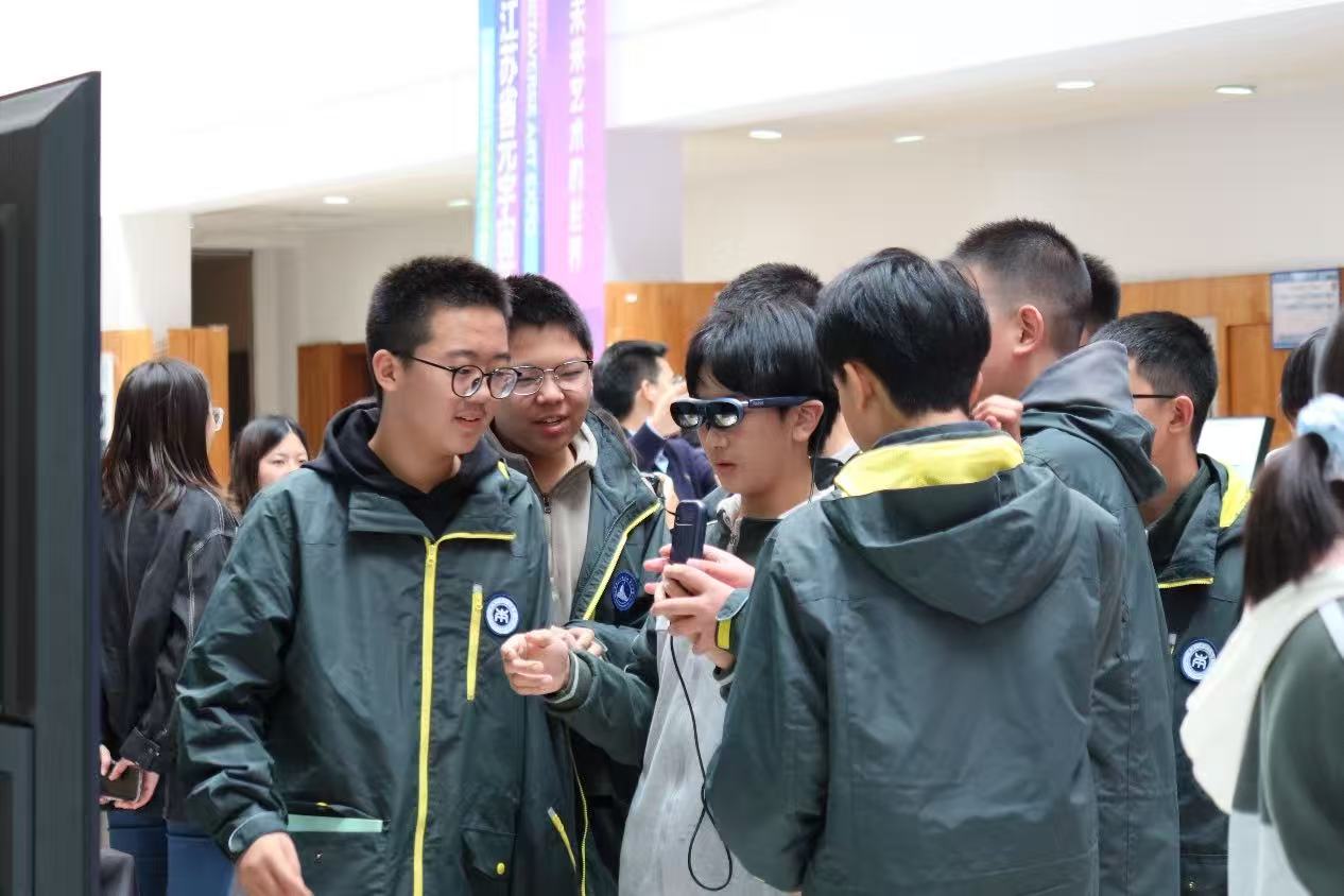 南京一中工大中学的师生在副校长乐培国及多位班主任的带领下前来观展。同学们在全息影像与AR互动中流连忘返,不时驻足交流、拍照记录。随后,师生还参观了天宝阁、图书馆等校园地标。活动不仅拓宽了学生的科技视野,也深化了校际交流,为不同学段间的思政育人实践搭建了沟通桥梁。
