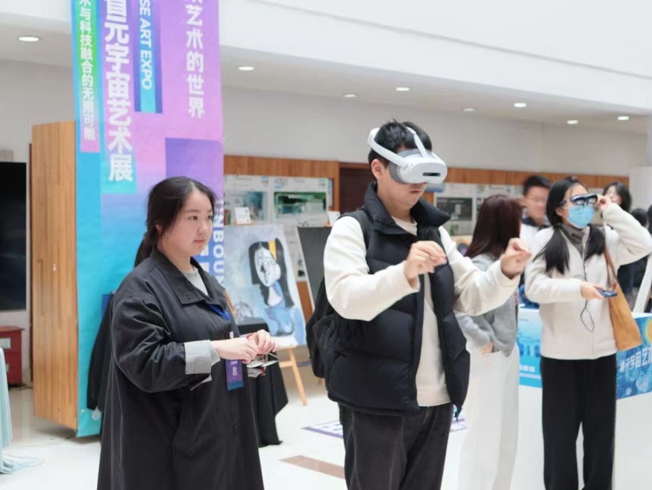 近日,江苏省元宇宙艺术展高校巡回展在南京工业大学艺术设计学院精彩亮相。展览以前沿数字技术与多元艺术形式深度融合为核心,为师生带来一场沉浸式的元宇宙艺术体验,并吸引了南京医科大学、南京工业大学实验小学、南京一中工大中学等多所院校师生代表齐聚一堂,共同见证科技与艺术交融的魅力,也为推动大中小学思政课一体化建设提供了生动实践。校工会主席彭亚辉、艺术设计学院党委书记周静以及学院团学组织负责人陪同接待。