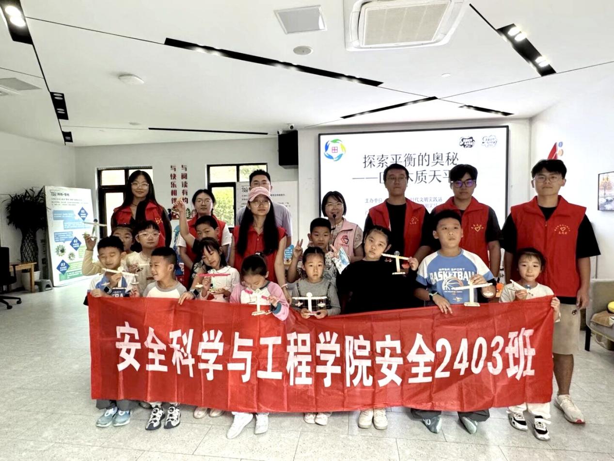 为丰富青少年课余生活,激发科学探索精神,10月12日上午,在江北新区顶山街道石佛社区新时代文明实践站内,一场别开生面的科普实践活动温馨开展。本次活动由安全科学与工程学院安全2403团支部与石佛社区共同组织,以“ 科学启蒙+手工实践”的形式,带领社区小朋友亲手制作木制天平,在欢声笑语中播撒科学种子,在陪伴中传递社区温情。