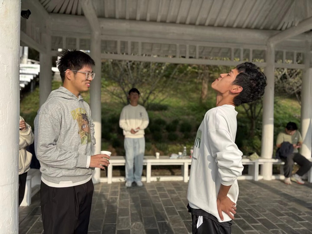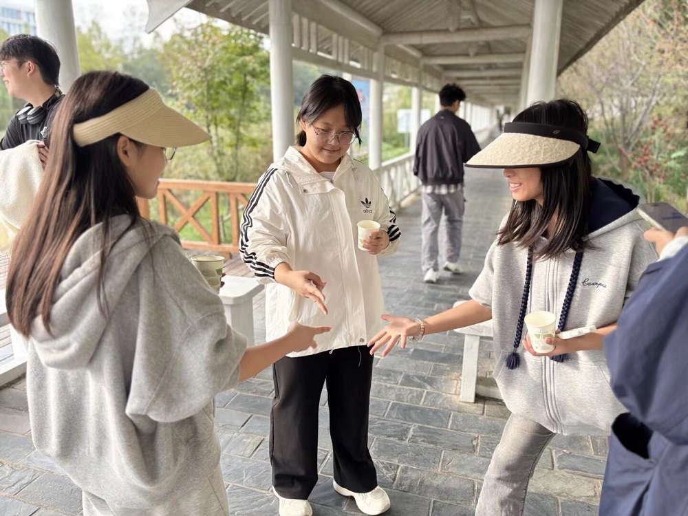 金秋时节,丹桂飘香。活动设置多个打卡点,同学们在每处打卡点进行游戏:“你画我猜”游戏中,大家传递秋日关键词,合作传递的同时伴随着欢声笑语;“含水传话”环节考验表达与倾听能力,模糊的发音引起阵阵欢笑;“夹气球”则需二人密切配合,小心翼翼地运送气球,步伐协调间尽显默契;“画画接力”中,每位同学的作品都给人惊喜;“石头剪刀布”里,输赢满是轻松愉悦。