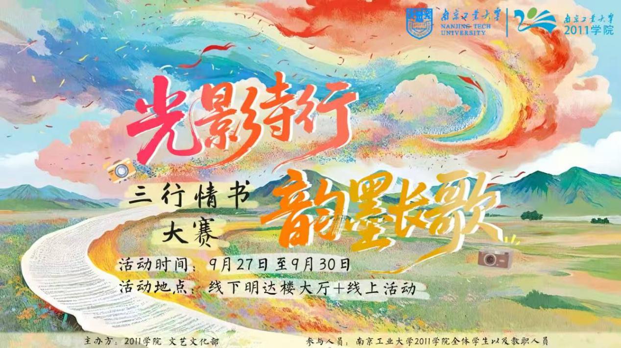 9月-10月,2011学院学生会组织开展了“光影诗行 韵墨长歌”三行情书主题活动。活动以镜头定格生活瞬间,以文字传递细腻情感,为同学们搭建了一个光影与诗意对话的创作平台。