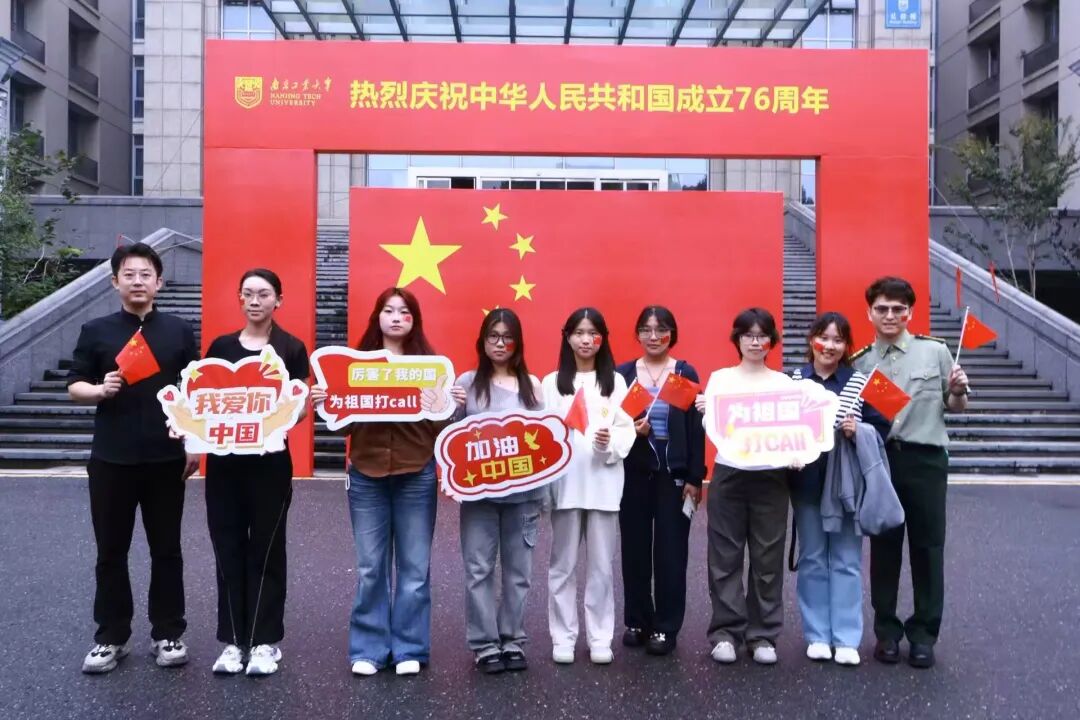 10月1日清晨,外国语言文学学院的学子们汇聚在鲜艳的五星红旗下。他们手举多语手牌,用中、英、日、德、法等五种语言齐声喊出“我爱你,中国”,声音穿越镜湖,回荡在校园内。这面迎风招展的红旗,见证了七十六载风雨兼程,也见证着我们以专业所学向世界讲述中国故事的青春誓言。