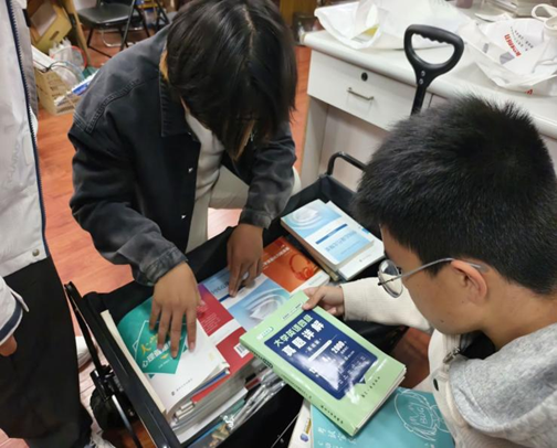活动现场,学长学姐的热情高涨。同学们捐赠出整理好的闲置课本,还贴心地向在场的低年级同学分享课程学习重点与备考经验。待捐赠结束后,志愿者们将所有书籍资料统一整理归类,据统计本次活动共收集课本等图书近300本,志愿者将将图书和学习资料转增给2025级新生。
