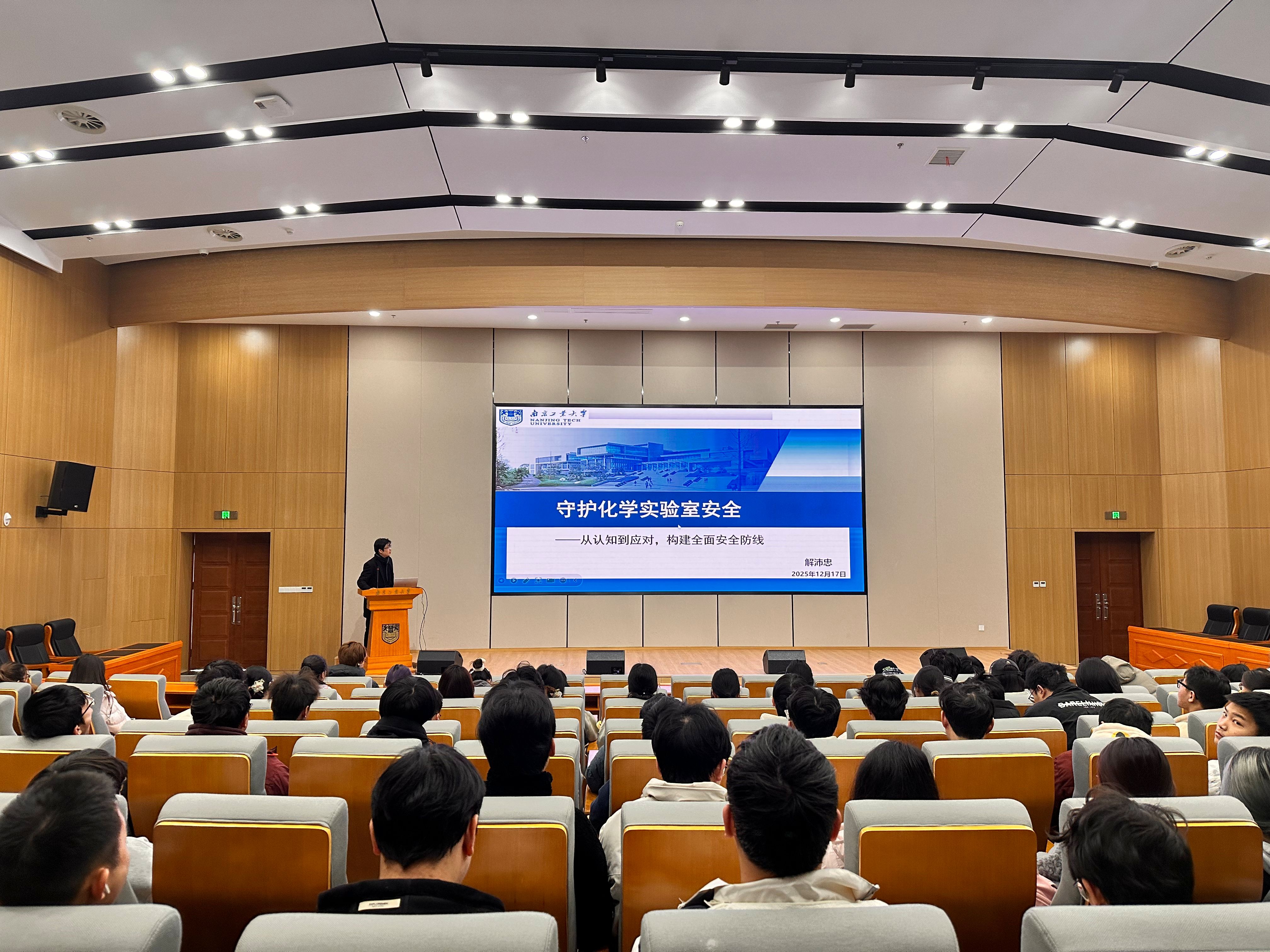 为加强学生实验安全教育,12月17日,化学与分子工程学院面向2024级本科生举行实验安全教育,会议由辅导员方进主持,邀请学院解沛忠教授作专题化学实验安全教育,全体2024级本科生参加。 解老师从当前实验室安全形势出发,结合高校典型事故案例,深入剖析了安全隐患与防范要点。围绕大创项目与日常实验中的安全管理实际,他系统讲解了操作规范、风险识别与应急处理等内容,引导学生牢固树立“安全第一”理念,严格遵守实验室规章制度,培养严谨规范的科研习惯。 本次会议强化了学生的实验安全观念与责任意识,明确了学业发展要求,为新阶段学习生活奠定了扎实基础。学院将持续开展常态化安全教育与学业指导,为学生的全面成长保驾护航。 作者:方进;单位:化学与分子工程学院;审核:王丽娟