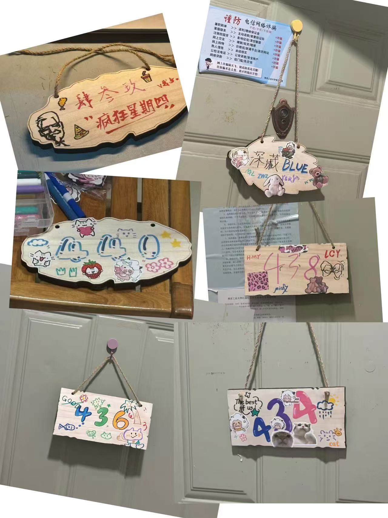 活动伊始,工作人员细致地向同学们介绍了门牌的绘制方法,并准备了多种创意模板,帮助大家激发灵感、拓展构思。在工作人员的耐心协助下,每一位同学都绘制出了独具特色的寝室门牌——贴上与环境主题相关的精美贴纸,一笔一画间尽显巧思。最终,一个个充满个性的门牌被郑重地悬挂在寝室门口,不仅装点了空间,更成为每个小家独特身份的象征。