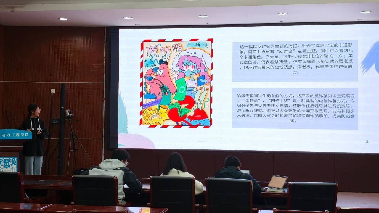 为增强大学生防范电信诈骗意识,近日,机械与动力工程学院于在学院报告厅开展“防范诈骗,警钟长鸣”海报设计活动。活动以“明眸识诈,青春护航”为主题,通过创意设计普及反诈知识,筑牢校园安全防线。