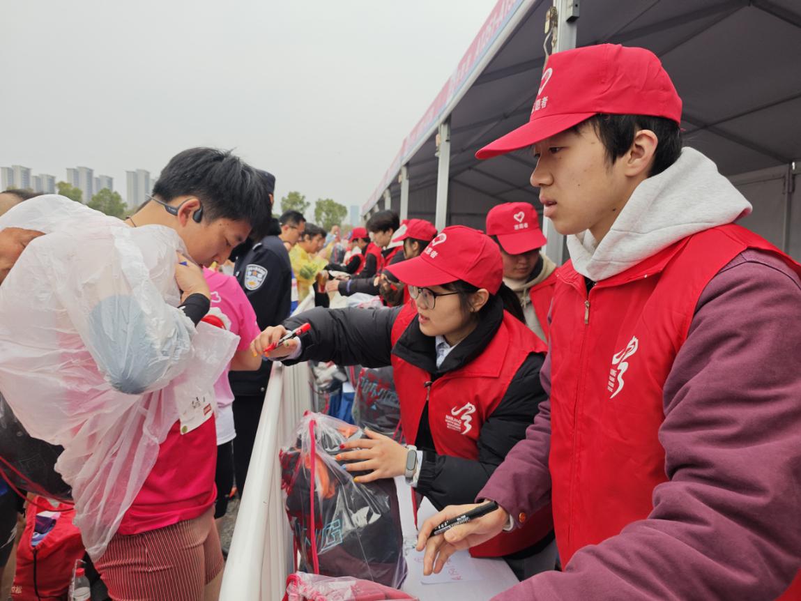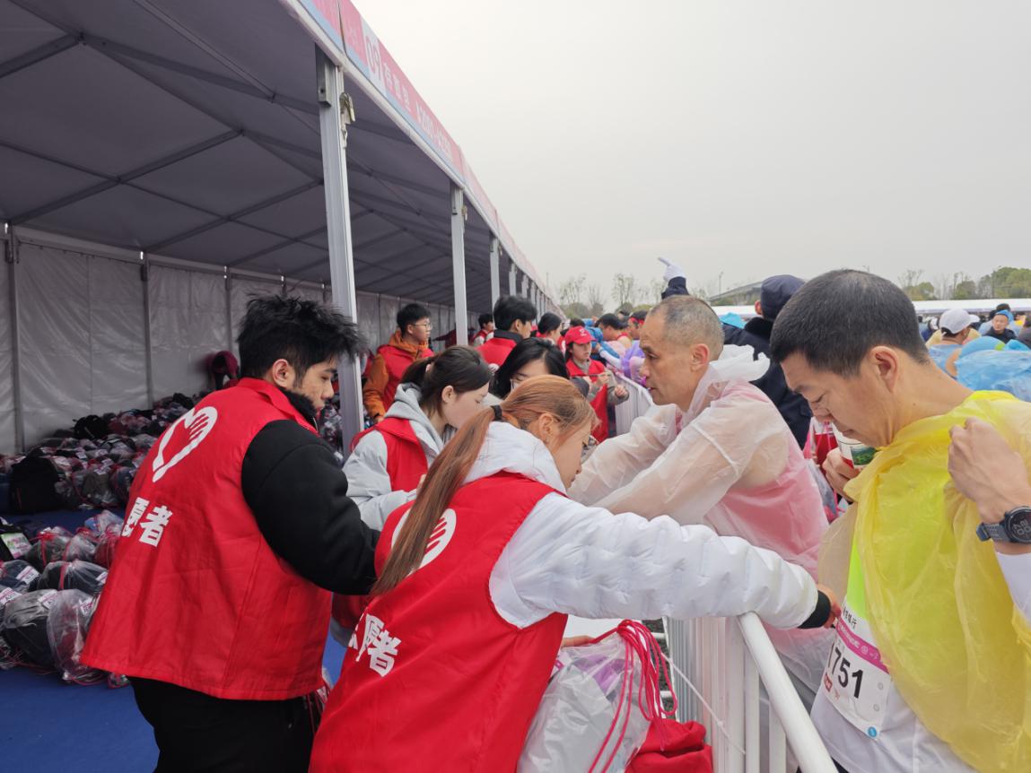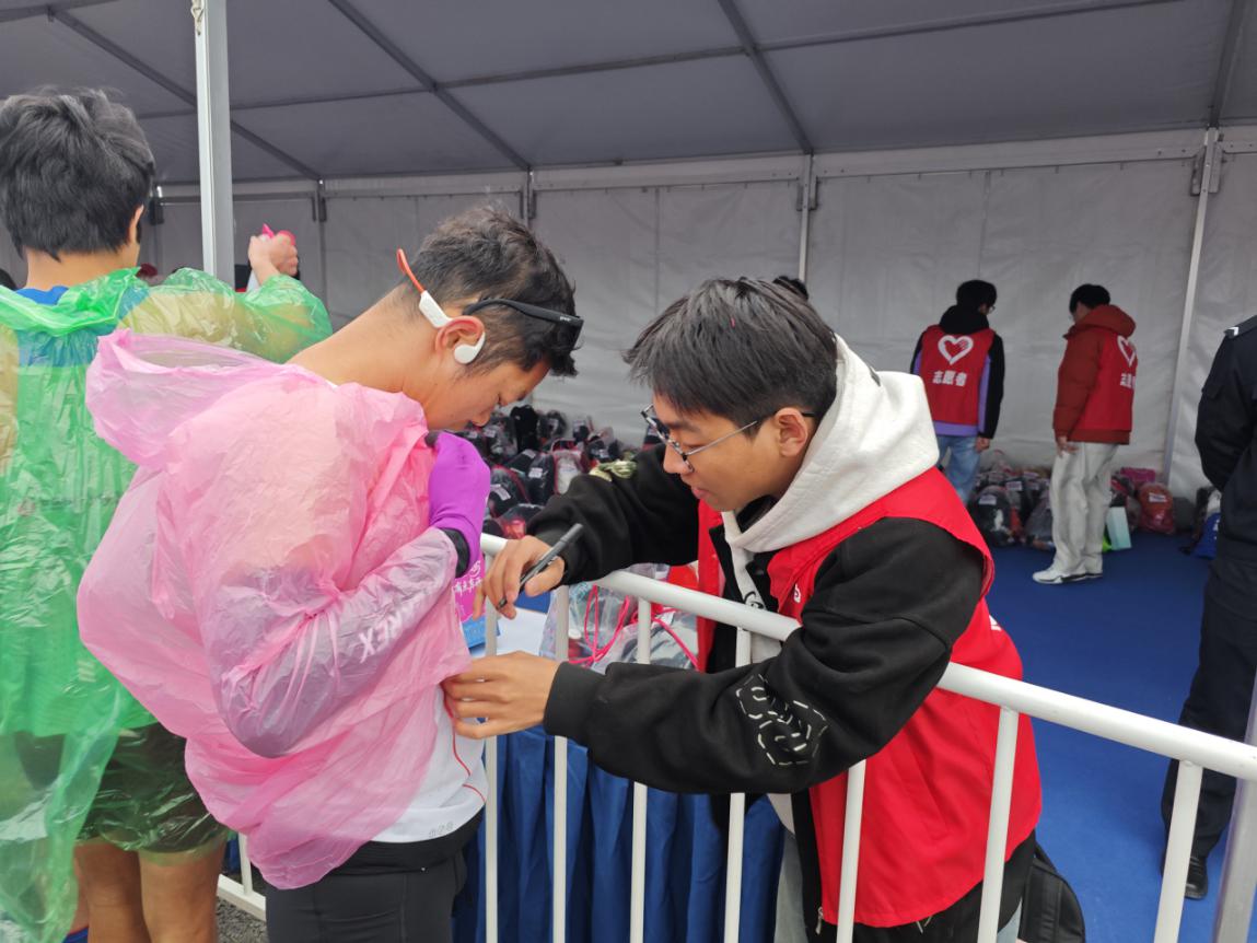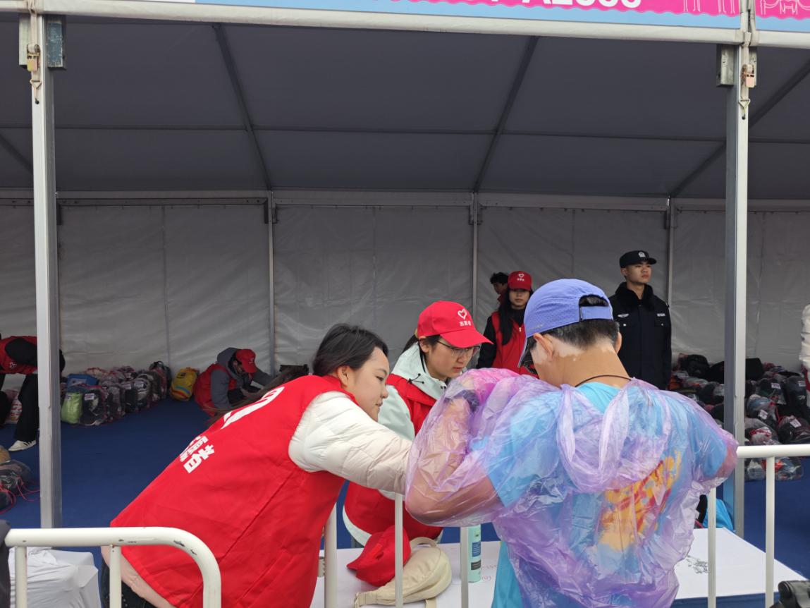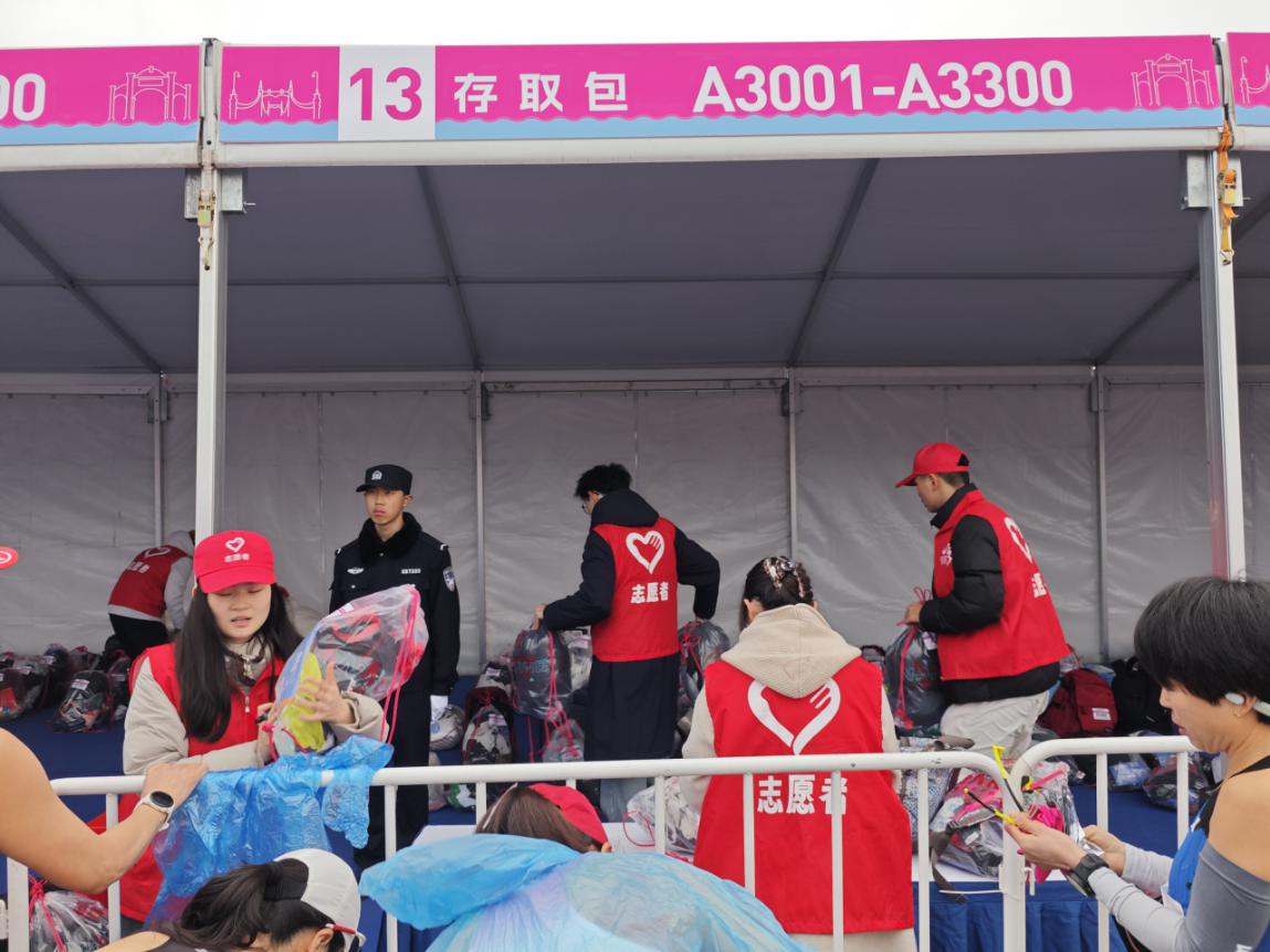 志愿者负责全马存取包工作,为确保赛事服务的规范性与高效性,志愿者提前参加系统的赛前培训。培训内容涵盖岗位职责、存取包流程、沟通技巧等关键环节,全面提升志愿者的服务素养与实操水平。赛事当日凌晨5点,夜色尚未褪去,志愿者们已集结完毕,迅速奔赴各自岗位开展筹备工作。在存取包区域,志愿者们分工协作,细致搬运整理物资、有序码放存衣包、认真核对号码布信息,各项工作有条不紊推进。从凌晨星夜集结到赛事圆满落幕,志愿者全程坚守岗位,直至最后一名跑者完成赛事,用青春担当书写了一份亮眼的志愿答卷。