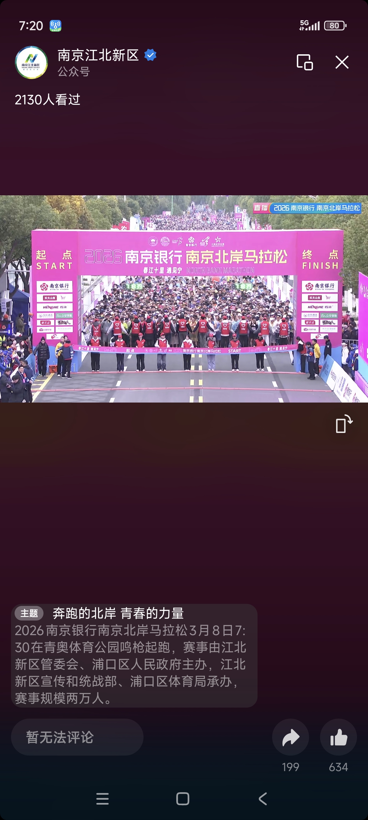 2026年3月8日7点30分,南京首届北岸马拉松在青奥体育公园鸣枪起跑,赛事由江北新区管委会、浦口区人民政府主办,江北新区宣传和统战部、浦口区体育局承办,赛事规模两万人。在校团委的统一组织下,交通运输工程学院团委书记袁志平等53名师生志愿者,助力2026年南京首届北岸马拉松圆满收官。