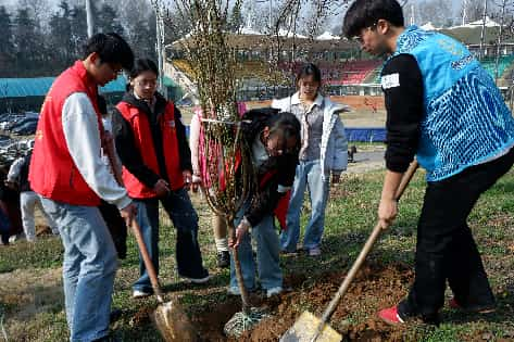 此次植树活动既是践行绿色发展、美化校园的实际行动,也是深化校地合作、推进党建共建共治,同时也是响应教育部怀进鹏部长提出的“身上有汗,关键就是让学生动起来的要求”。活动现场春意盎然,校地双方人员热情高涨、分工协作,大家挥锹铲土、扶苗填坑、踩实浇水,默契配合、井然有序。师生与社区工作人员并肩劳作,以实际行动为校园添新绿、筑美景,现场洋溢着团结奋进、携手共建的热烈氛围。此次植树实践,让同学们走出教室、亲近自然,在劳动中强健体魄、磨炼意志,是落实“健康第一”教育理念、推动学生体质提升的生动体现。近年来,数理科学学院坚持以党建为引领,深化与同心社区校地共建,推动高校育人资源与基层治理需求精准对接,构建资源共享、优势互补的基层治理新模式。