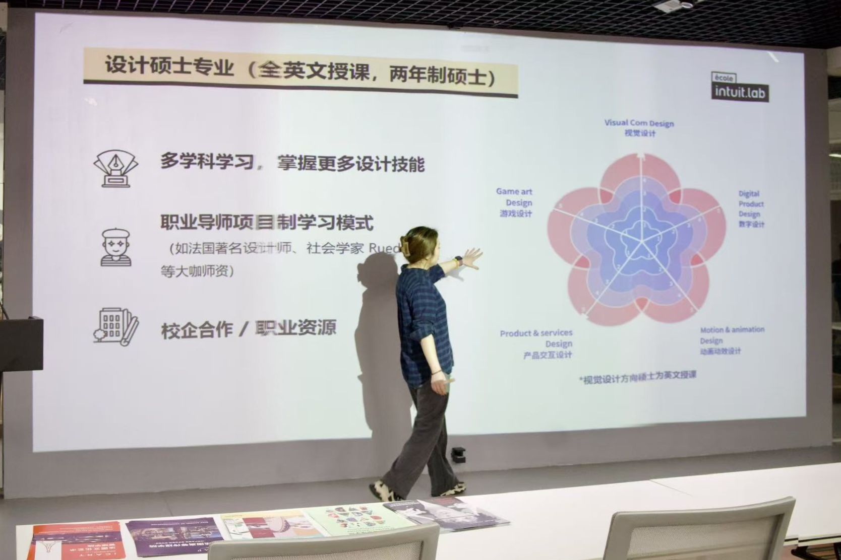 公开课上,李老师围绕法国艺术教育优势展开分享,介绍了法国自由创作、跨学科实践的教育特色,以及生活补贴、就业支持等完善保障。随后,李老师详细介绍了法国顶尖艺术院校资源,相关院校硕士文凭获中、法两国教育部认证,校企合作资源丰富,为学生提供了优质的学习与实践平台。