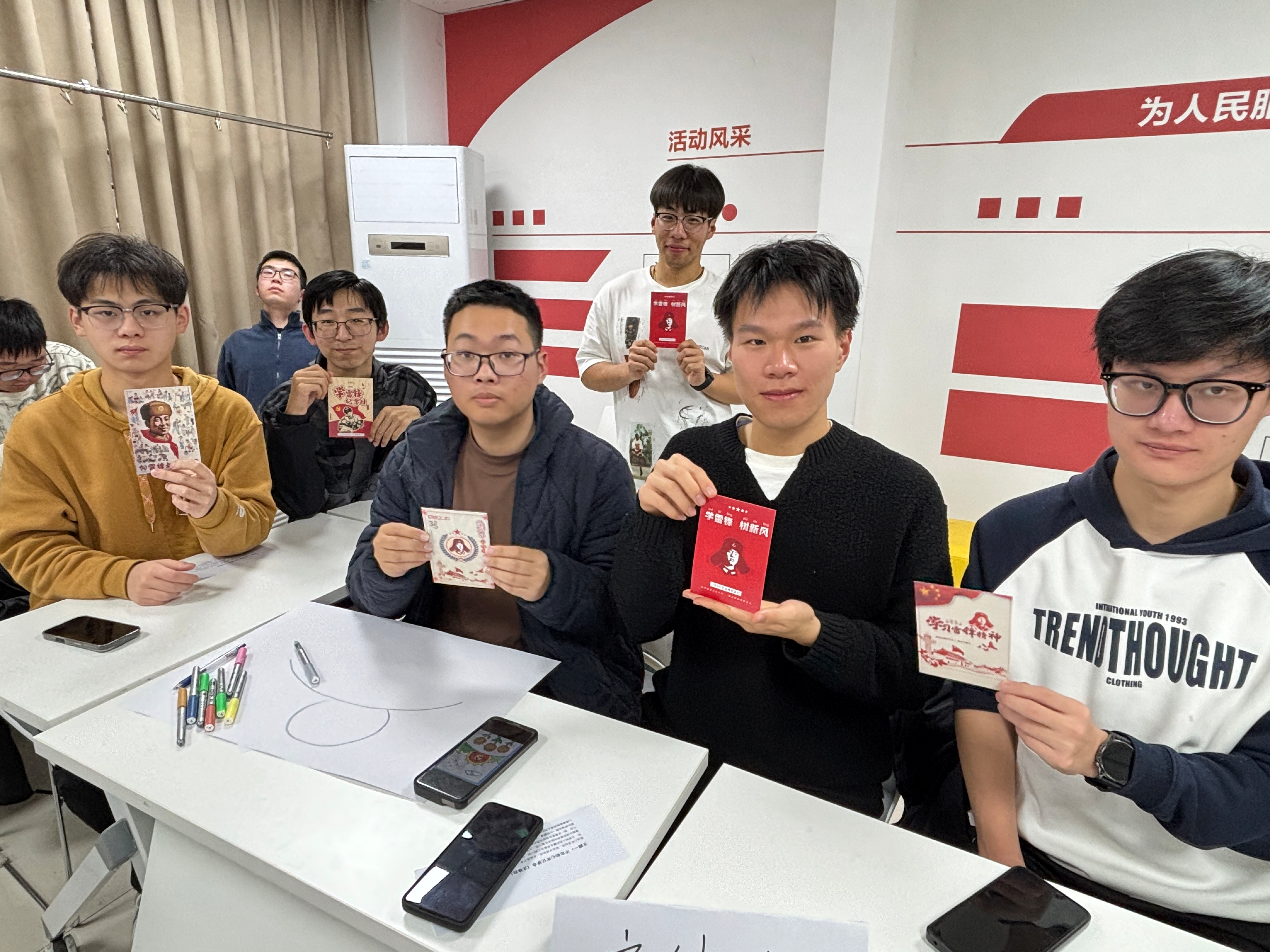 本次读书会紧扣“初心铸魂、践行传善、致远赋能”核心主线,创新设置三个递进式篇章,打破传统读书会单一诵读模式,让雷锋精神可感、可学、可践。在“初心·读悟经典”篇章,全体参与人员分为六个小组,依次共读《雷锋日记》经典选段,在朗朗书声中重温雷锋同志的初心与坚守,感受穿越时空的精神力量。在“践行·绘暖传情”篇章中,各小组围绕雷锋精神主题开展绘画创作,将心中的温暖瞬间与精神感悟凝于笔端。在“致远·践行初心”篇章,学子们手持雷锋主题明信片,书写身边值得感恩的人和事,用质朴真挚的文字,定格校园里的善意微光,让“身边的雷锋”鲜活可感,让奉献精神直抵人心。活动最后,学子们结合自身学习生活,分享对新时代雷锋精神的理解与感悟,纷纷表示将以雷锋为榜样,把善意融入日常、把奉献落到实处。