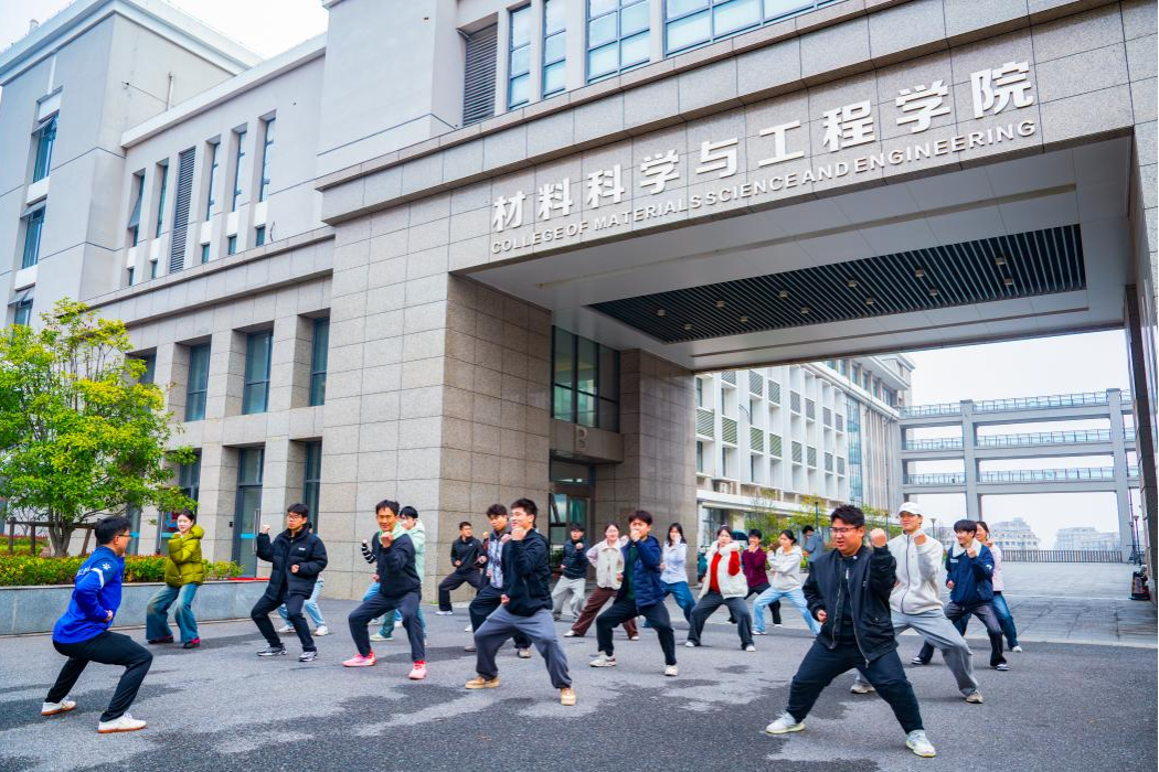 为积极响应2026年教育部新印发《关于全面推进健康学校建设的指导意见》要求,深入落实“健康第一”的理念,践行五育并举育人方针,近日,材料科学与工程学院组织研究生在润德楼广场顺利开展“强体魄展青年风采,精材料筑强国根基”武术学习活动。本次活动以武术习练为载体,将身体素质锤炼与专业使命教育深度结合,吸引全院学生踊跃参与。